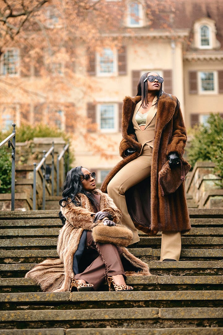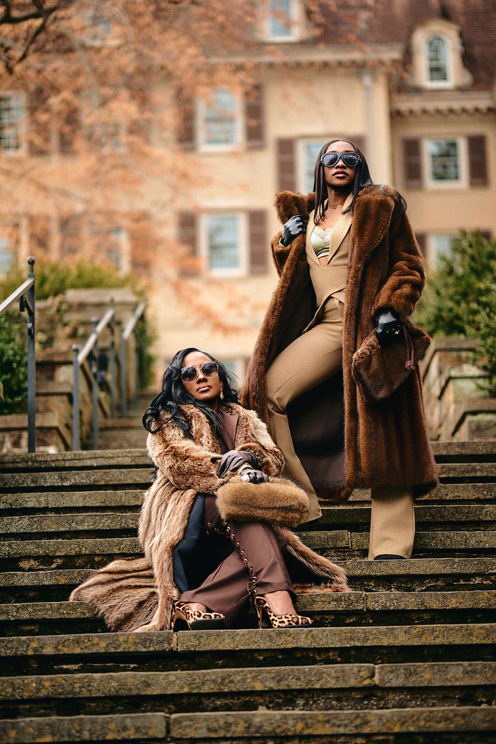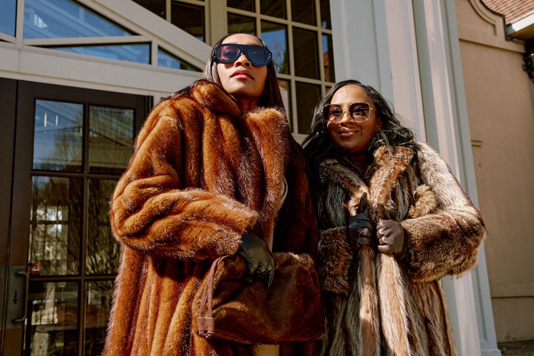 What I did not know was that Ayanna and her daughter were about to show up and completely take over. They stepped out in floor length fur coats. Sunglasses on. Leather gloves. Leopard print heels. Not a single look between them that said they were there to play around.
